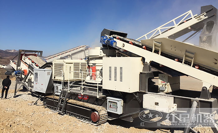 1,履帶顎式移動破碎站+履帶圓錐式移動破碎站+沖擊式流動打沙生產(chǎn)線