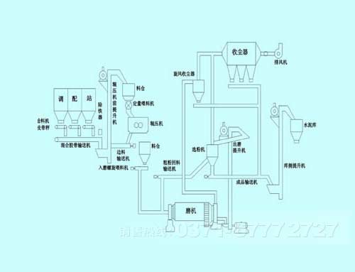 水泥粉磨站是水泥生產(chǎn)過(guò)程中 最后成品階段單獨(dú)獨(dú)立出來(lái)而形成的水泥成品生產(chǎn)單位。該階段主要是將水泥熟料加入適當(dāng)?shù)幕旌喜牧线M(jìn)行粉磨,從而產(chǎn)出成品水泥。我公司生產(chǎn)的水泥粉磨站設(shè)備采用了輥壓機(jī)+分散打散機(jī)+開(kāi)流高細(xì)磨的粉磨流程。這是把破碎功能移到磨機(jī)外面,使得磨機(jī)只管研磨,因此,就極大的提高了磨機(jī)的產(chǎn)量。而破碎功能移到磨機(jī)外面后,這個(gè)預(yù)粉系統(tǒng)必須是閉路的。磨機(jī)系統(tǒng)采用開(kāi)流,開(kāi)流粉磨流程簡(jiǎn)單,易操作,易管理, 而且開(kāi)流粉磨的水泥顆粒細(xì)度成正態(tài)分布,分布廣,因此水泥水化時(shí)水泥的密度高,稠度高,坍落度小,水泥的早期強(qiáng)度大。也比較符合水泥新標(biāo)準(zhǔn)。 由于這個(gè)特點(diǎn),,開(kāi)路磨系統(tǒng)可以比閉路磨系統(tǒng)多摻3%~5%的混合材,大家都清楚,現(xiàn)在的水泥粉磨,就靠混合材掙錢(qián),所以,開(kāi)路磨系統(tǒng)的好處就凸現(xiàn)出來(lái)了。